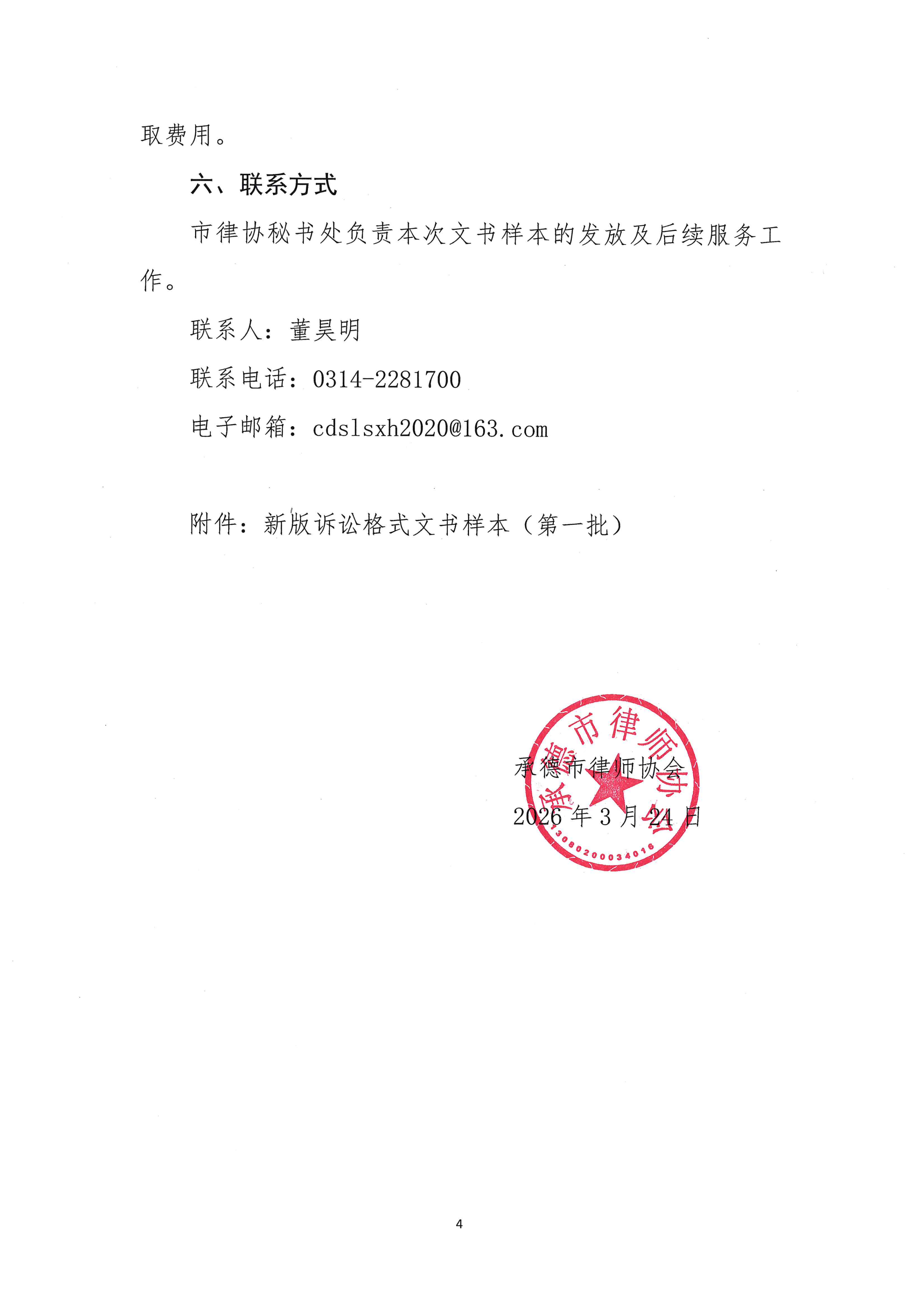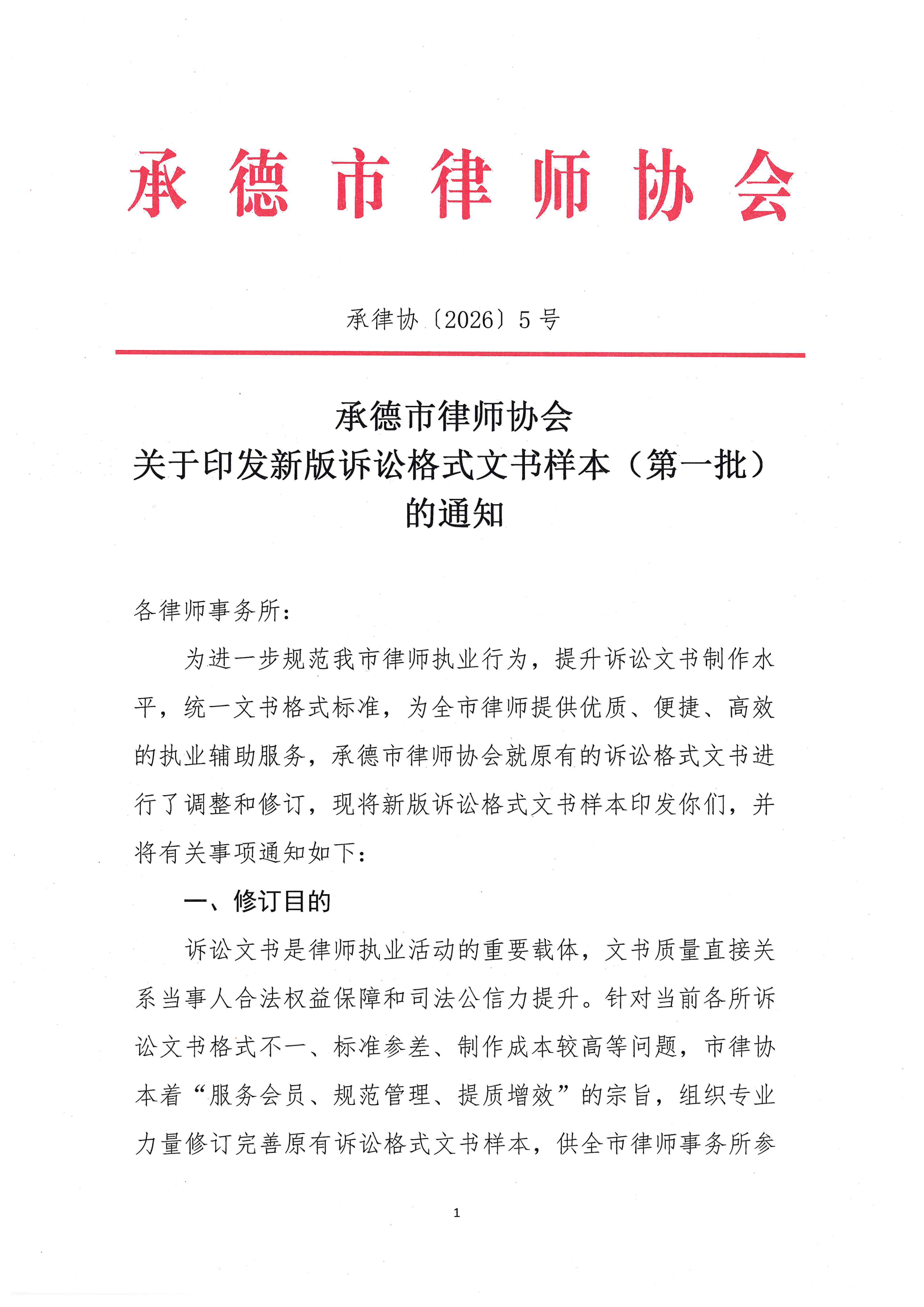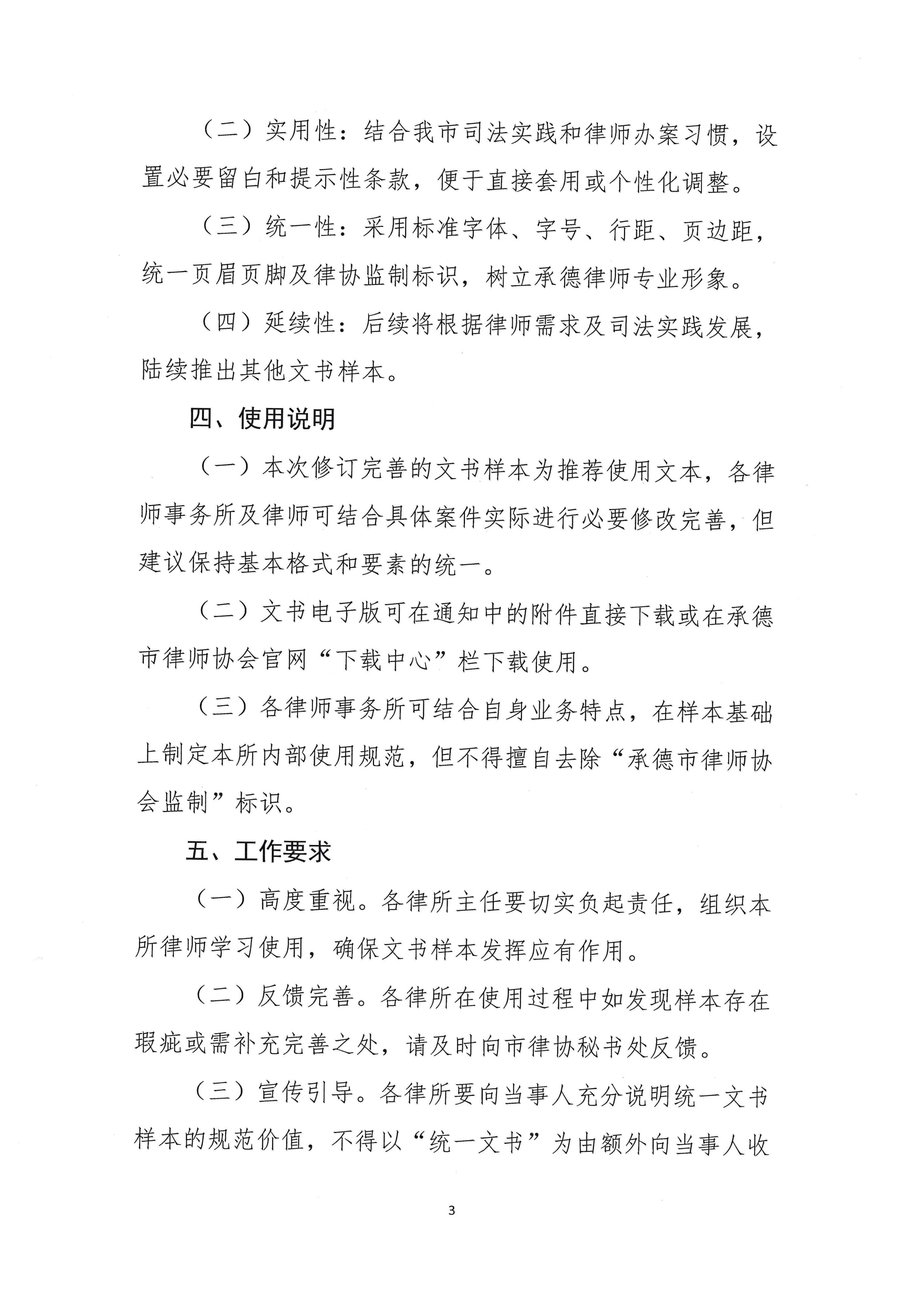 承德市律师协会关于印发新版诉讼格式文书样本(第一批)的通知