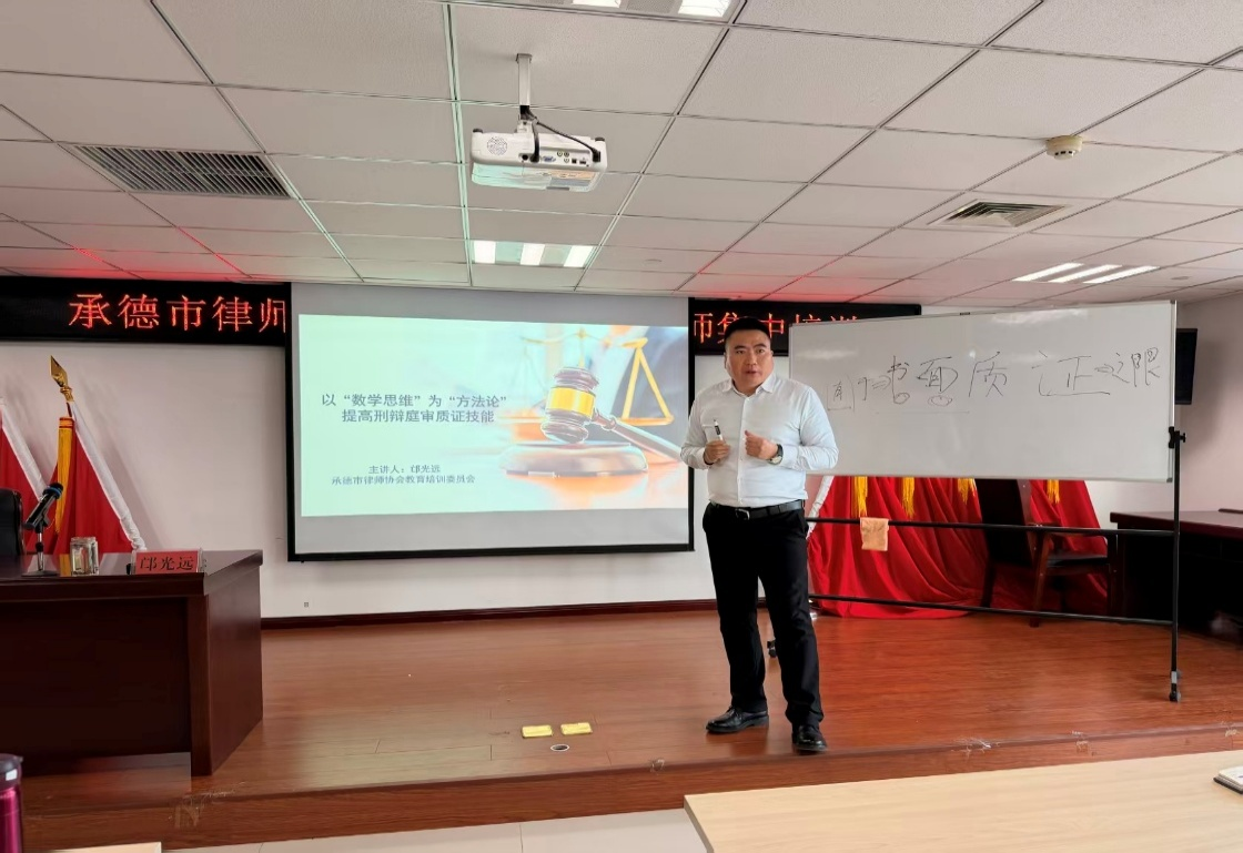 上午9时,培训正式拉开帷幕。首位主讲人是承德市律师协会副会长、市律协教育培训委员会主任邙光远,他以“以‘数学思维’为‘方法论’提高刑辩庭审质证技能”为主题展开授课。他打破传统法律教学模式,创新性地将数学中的“代入法”“合并同类项”方法融入刑辩庭审质证教学:通过“代入法”模拟控辩双方视角,拆解证据链逻辑漏洞;用“合并同类项”梳理复杂证据,提炼核心争议焦点。课堂上,邙光远副会长结合典型案例现场演示,并与实习人员积极互动,针对“如何质证电子证据真实性”“面对矛盾证言如何应对”等实操疑问逐一解答,让抽象的质证技巧变得具象可学,有效提升了实习律师应对刑辩庭审的实战能力。